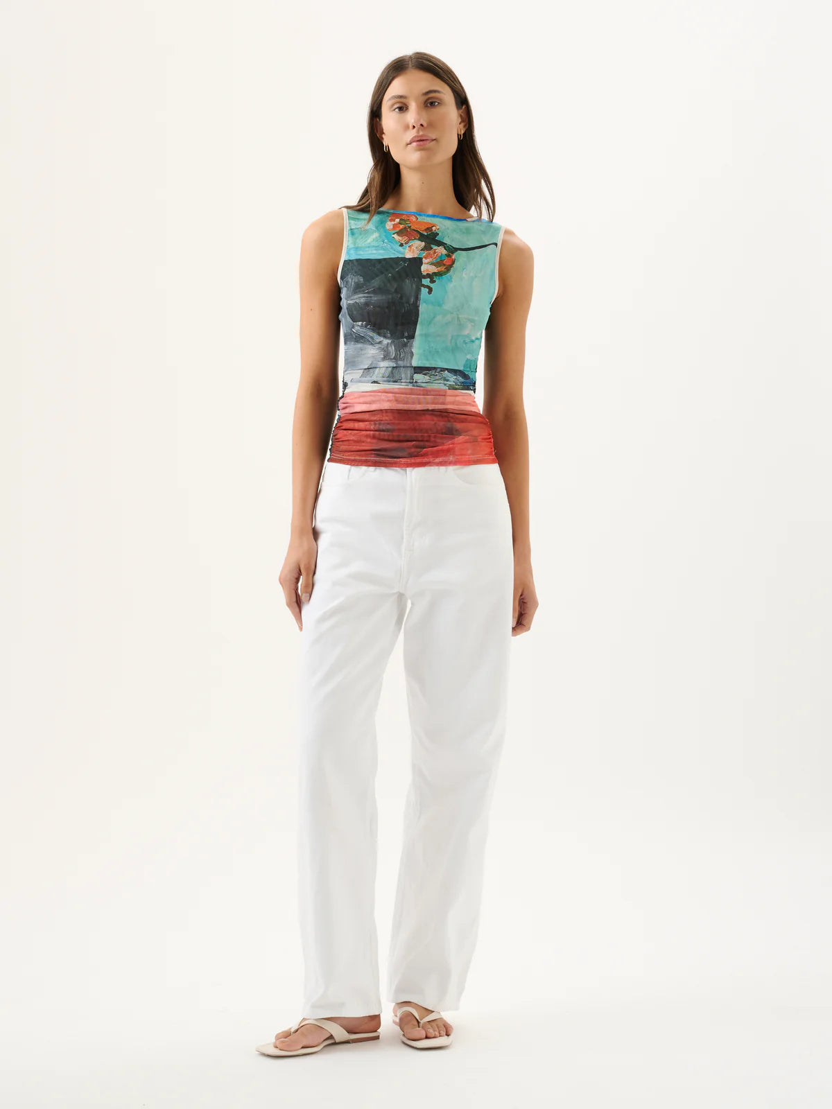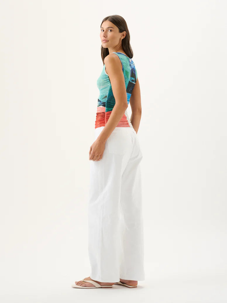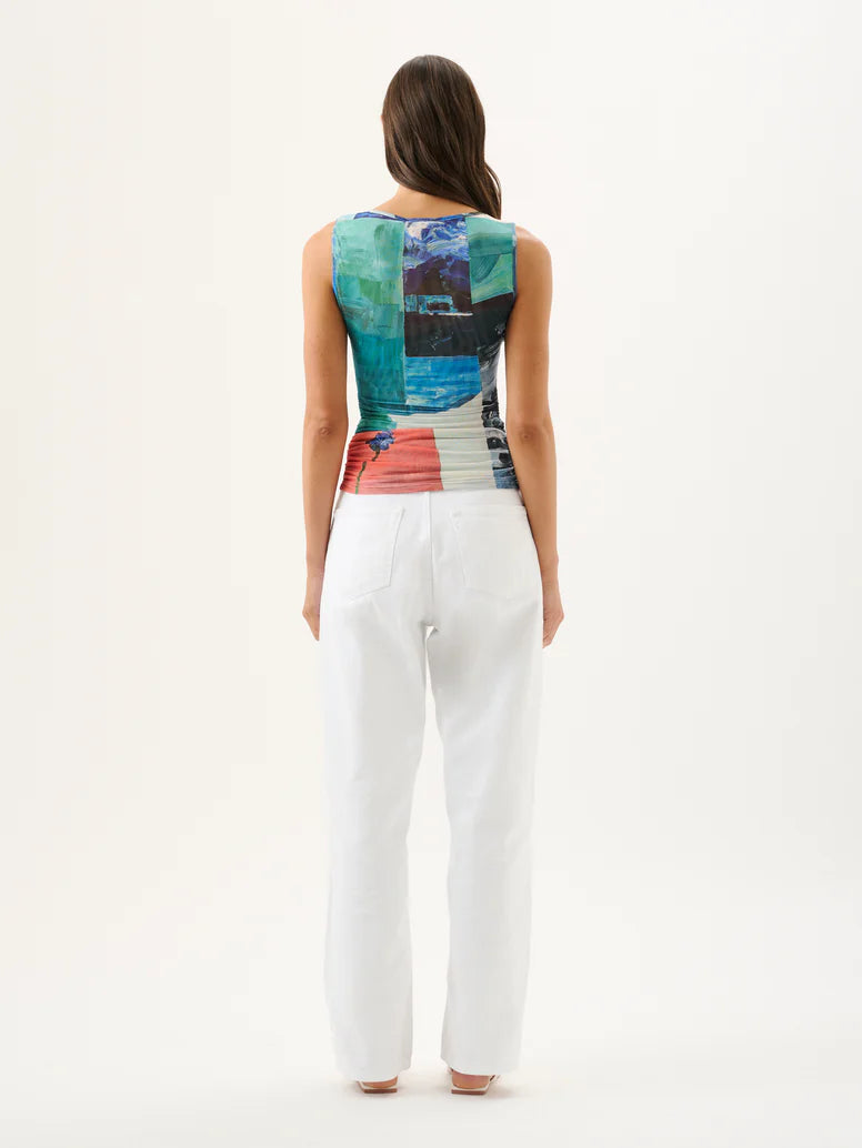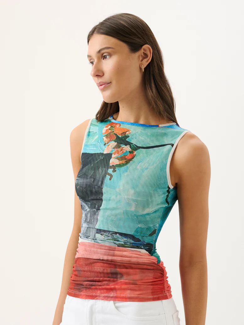Introducing the Darcy Tank, crafted from a soft mesh fabrication rendered in the bespoke Wonderland print. Featuring a fitted silhouette and classic round neckline, the Darcy Tank is the ultimate elevated wardrobe companion. Please note print placement is individual and unique to each piece.