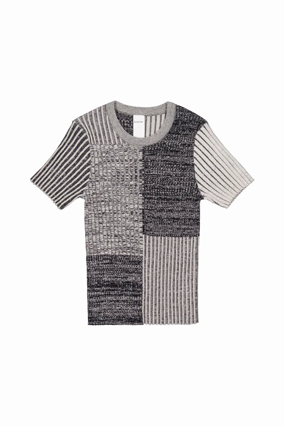 The Gesso Top by Kowtow is a close-fitting, knit tee defined by its patchwork design of marled ribbed panels. Each panel adds to the textural and graphic character of the tee. Crafted from organic cotton and knit in a rib stitch.