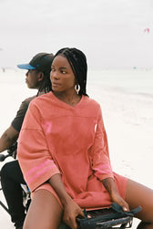 The Team KC Tee Dress is retro athletic inspired. Crafted in soft, washed cotton for a lived-in feel, this oversized tee dress features a relaxed v-neckline, drop shoulders and wide sleeves with sporty stripe detailing. Designed for comfort and versatility, the Team KC Tee Dress can be worn solo, layered over bike shorts or as a beach cover-up.