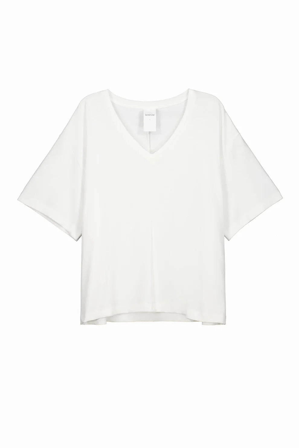 Defined by its effortless drape and flattering v-neckline, the Unity Tee offers a relaxed, boxy fit. Featuring drop shoulders and unique center front and back seams in place of traditional side seams, it is crafted from heavyweight organic cotton jersey.